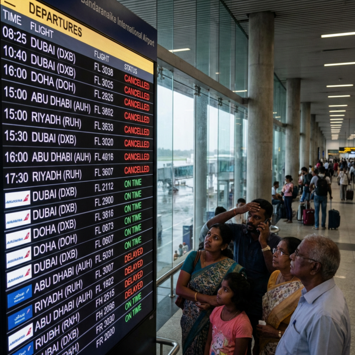 * කටුනායක සිට මැදපෙරදිග බලා පිටත්වීමට නියමිතව තිබූ ගුවන් ගමන් වාර 60ක්
