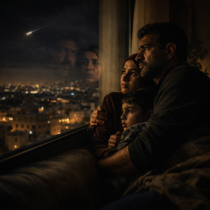 ජෝර්දානයේ වෙසෙන අපගේ මිතුරන් එවූ වීඩියෝ දර්ශනවල, ඔවුන්ගේ නිවෙස්වල දොර ජනෙල් දෙදරා යන අයුරු පටිගත වී තිබේ. ඉහළ අහසේ මිසයිල එකිනෙක ගැටී විනාශ වන “ගුගුරන හඬ” මැද, ඔවුන් තම නිවෙස් තුළට වී රැකවරණය පතති.