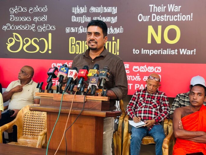 “යුද්ධය උන්ගේ විනාශය අපේ! අධිරාජ්යවාදී යුද්ධය එපා!’ යන තේමාව යටතේ පෙරටුගාමී සමාජවාදී පක්ෂය විසින් සංවිධානය කරන ලද විශේෂ සංවාද මණ්ඩපයක් පසුගියදා (25) කොළඹදී පැවැත්විණි. එහිදී අදහස් දැක්වූ පක්ෂයේ ප්රධාන ලේකම් දුමින්ද නාගමුව, මැදපෙරදිග කලාපයේ නිර්මාණය වෙමින් පවතින යුදමය තත්ත්වය ශ්රී ලංකාව වැනි රටවලට එල්ල කළ හැකි දැඩි බලපෑම සහ ඊට මුහුණ දීම සඳහා රටක් ලෙස ගත යුතු ක්රියාමාර්ග පිළිබඳව පුළුල් විග්රහයක් ඉදිරිපත් කළේය.